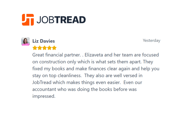 We help construction companies integrate JobTread with their bookkeeping and financial workflows — so project data, costs, and accounting stay aligned from day one.